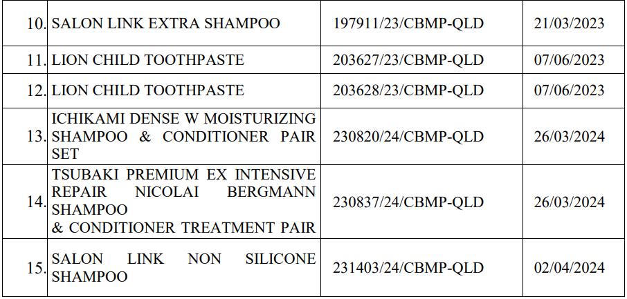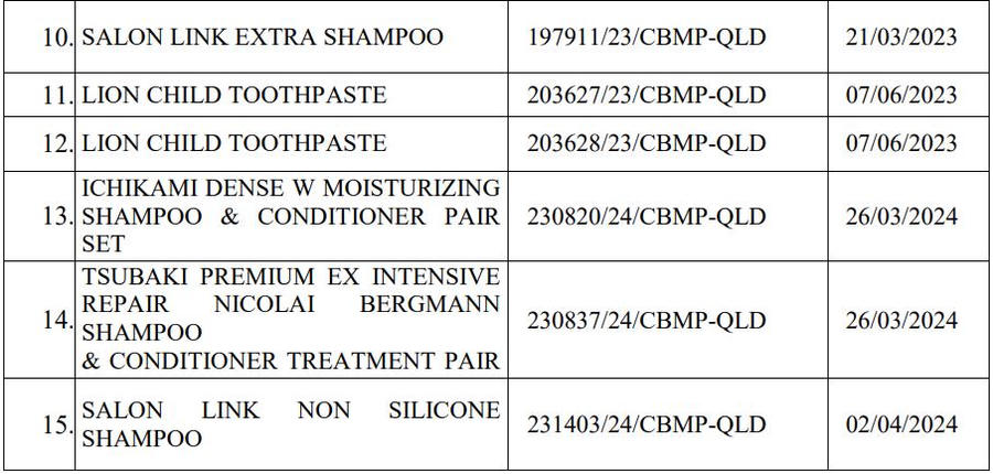 Đáng chú ý, trong danh mục sản phẩm bị buộc tiêu hủy có nhiều thương hiệu mỹ phẩm quen thuộc trên thị trường như Reihaku, Arau Baby, Kumano, Machérie, Hadabisei, Tsubaki, Salon Link, Lion..., bao gồm các sản phẩm như sữa rửa mặt, dầu gội, dầu xả, xà phòng và kem dưỡng.