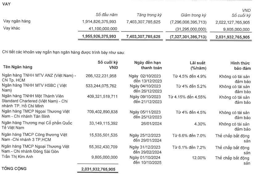 Tính đến ngày 30/9/2023, tổng các khoản vay nợ của DGW ghi nhận tại 2.031 tỷ đồng, hầu hết là vay ngắn hạn tại ngân hàng như Ngân hàng TMCP Ngoại thương Việt Nam (Vietcombank), Ngân hàng TNHH MTV HSBC Việt Nam, Ngân hàng TNHH MTV Standard Chartered Việt Nam, Ngân hàng TNHH MTV ANZ Việt Nam,…hầu hết đều không có tài sản bảo đảm.
