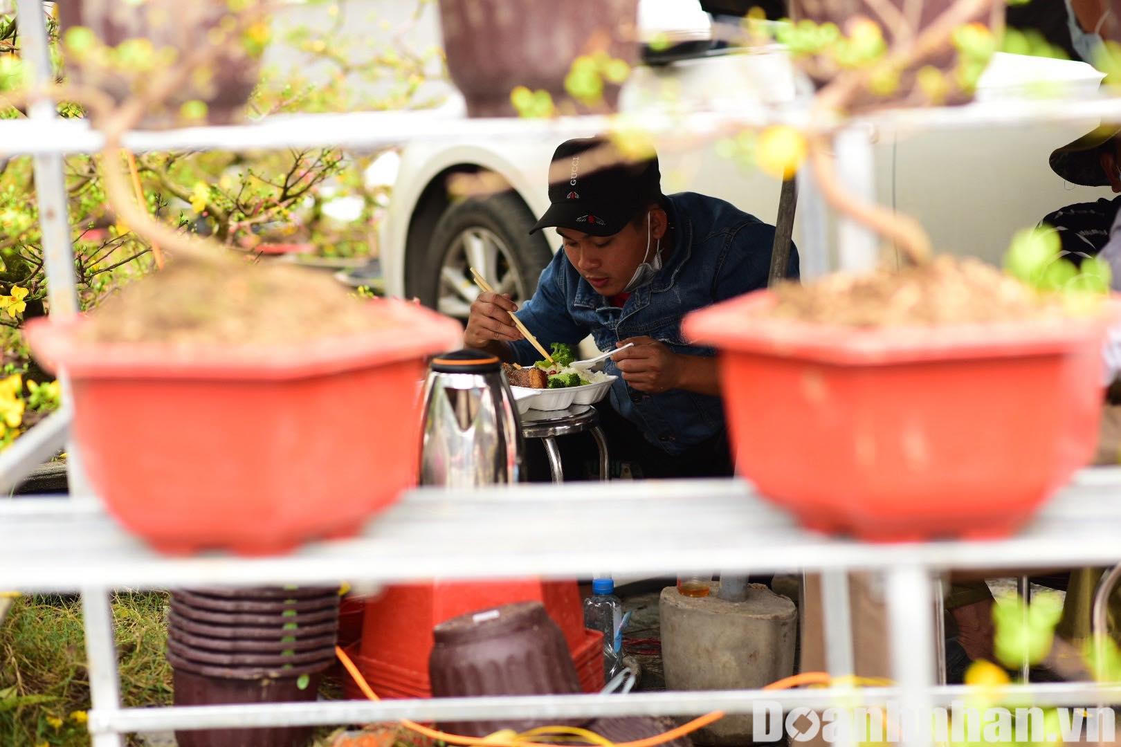 Dù lượng mai chuyển ra thủ đô năm nay giảm nhiều nhưng không vì vậy mà cháy hàng. Hàng loạt điểm bán hoa mai trên đường Lạc Long Quân vắng bóng những vị khách ghé thăm. Sự buồn bã hiện rõ trên những khuôn mặt rám nắng của các tiểu thương.