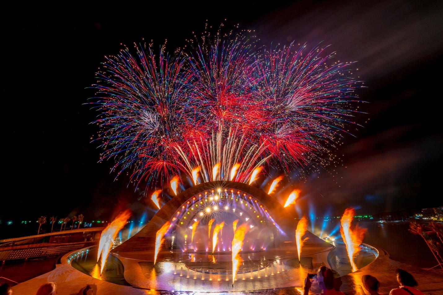 Cùng với đó là 2 đài phun nước sử dụng công nghệ Đức với 300 vòi phun và hệ thống chiếu sáng kết hợp loa toàn dải, loa siêu âm đồng bộ, được điều khiển bởi hệ thống phần mềm hiện đại, tạo nên show nhạc nước với nhiều chủ đề như Thăng hoa tỏa sáng, Điểm hẹn ánh dương, Bản hòa tấu của biển… hứa hẹn mang đến người xem những khoảnh khắc đêm Sầm Sơn đặc biệt ấn tượng.