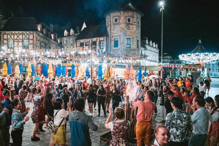 Trong thế giới thần tiên đó cũng không thiếu những bữa tiệc vui cho ai chọn thưởng ngoạn vẻ đẹp đêm Bà Nà. Nhà hàng Beer Plaza vô vàn những món ngon, bia Đức thơm nồng đưa những bước chân rộn ràng theo âm nhạc sôi động và những nhịp điệu cuồng say của những vũ công quốc tế.