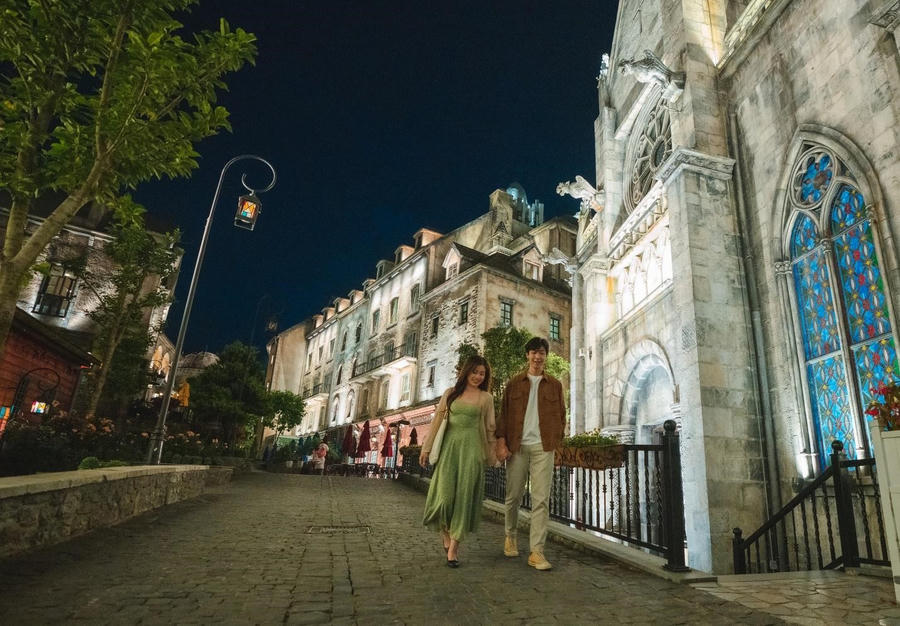 Với các cặp đôi, đêm Bà Nà là thứ gia vị tuyệt vời cho tình yêu. Chỉ cần được khoác tay nhau đi giữa những con đường lát đá, dưới ánh sáng ấm áp huyền diệu hắt ra từ những lâu đài, cảm nhận hơi sương lành lạnh len lách trên môi, trên tóc, thế là đủ cho một chuyến đi mà hẳn là tới lúc đầu bạc người ta vẫn chẳng thể nào quên.