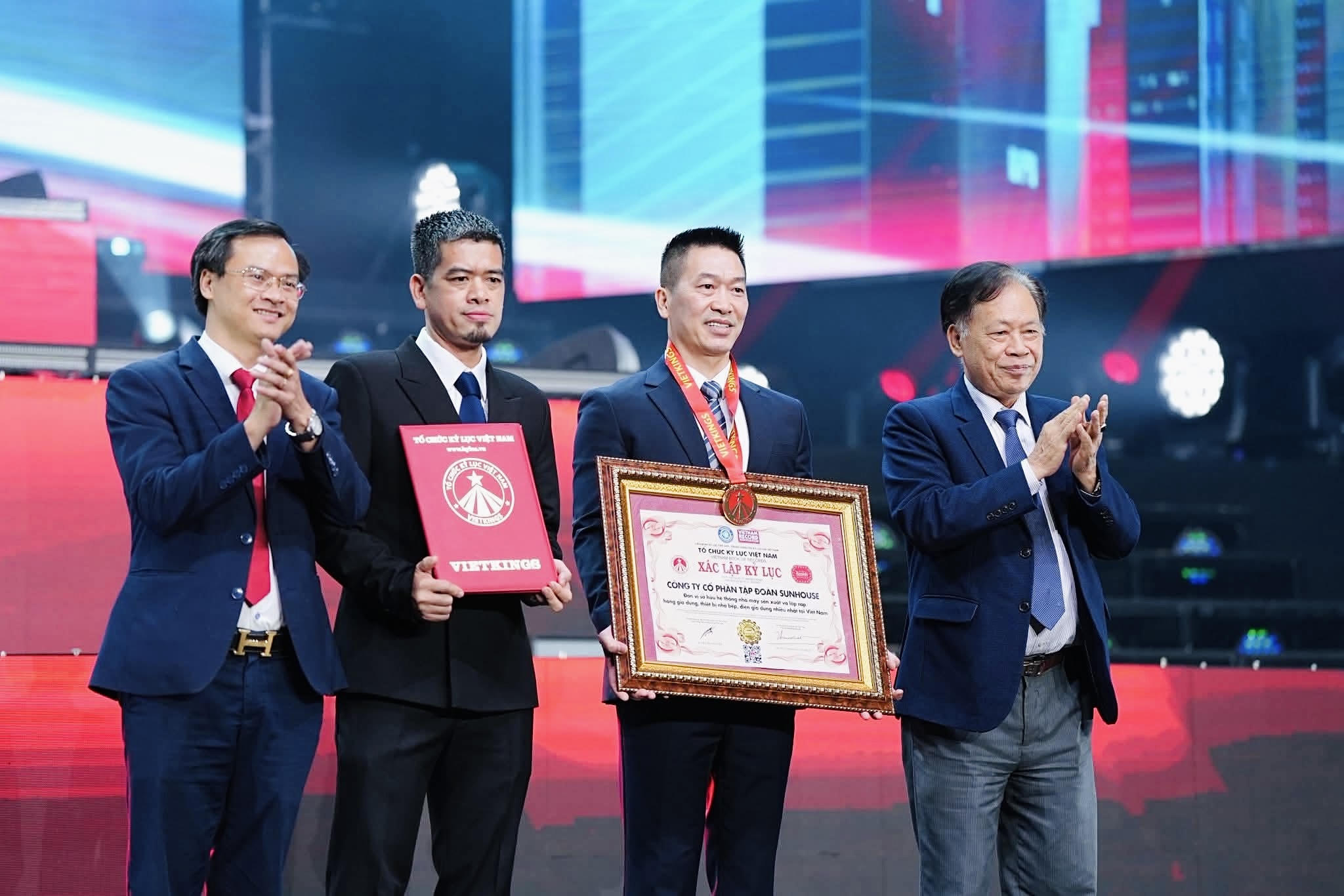 Cũng trong khuôn khổ sự kiện kỷ niệm 25 năm, SUNHOUSE vinh dự được Tổ chức Kỷ lục Việt Nam xác nhận và trao Kỷ lục “Đơn vị sở hữu hệ thống nhà máy sản xuất gia dụng nhiều nhất Việt Nam”. Kỷ lục này là minh chứng cho năng lực sản xuất toàn diện, khả năng làm chủ chuỗi giá trị, chiến lược đầu tư bài bản và vị thế của SUNHOUSE với vai trò là nhà sản xuất hàng đầu khu vực. Hệ thống 10 nhà máy của SUNHOUSE, với tổng diện tích hơn 100.000m², năng lực sản xuất hơn 80 triệu sản phẩm mỗi năm đã trở thành trụ cột giúp tập đoàn làm chủ công nghệ lõi và tiêu chuẩn quốc tế.