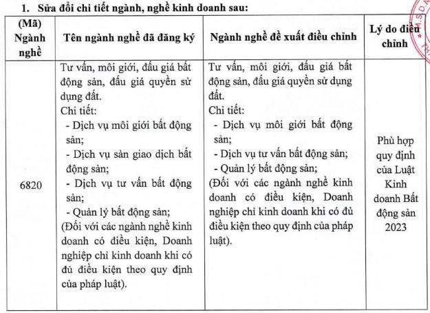Ngoài ra, để phù hợp với quy định của Luật Kinh doanh Bất động sản 2023, SSH sẽ trình cổ đông thông qua việc điều chỉnh, bỏ chi tiết ngành "Dịch vụ sàn giao dịch bất động sản".