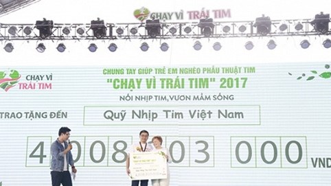 "Chạy vì trái tim" quyên góp được hơn 4 tỷ đồng hỗ trợ các em nhỏ mắc bệnh tim bẩm sinh 13/11/2017 (Doanhnhan.vn) - Nhằm mục đích mang lại nụ cười và tương lai tươi sáng cho nhiều trẻ em mắc bệnh tim bẩm sinh trên khắp mọi miền của đất nước, chương trình “Chạy vì trái tim 2017” do Quỹ nhịp tim Việt Nam kết hợp với CTCP Gamuda Land (HCMC) tổ chức với thông điệp mới “Nối nhịp tim, vươn mầm sống”.
