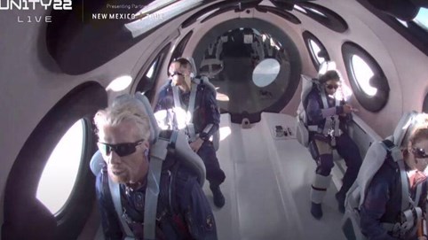 "Vượt mặt" Jeff Bezos, tỷ phú Richard Branson bay vào vũ trụ thành công 13/07/2021 Con tàu V.S.S Unity đã thực hiện động tác "quay chậm", lơ lửng trong tình trạng không trọng lực vài phút để các vị khách ngắm nhìn toàn cảnh trái đất và rìa vũ trụ trước khi trở về nhà.