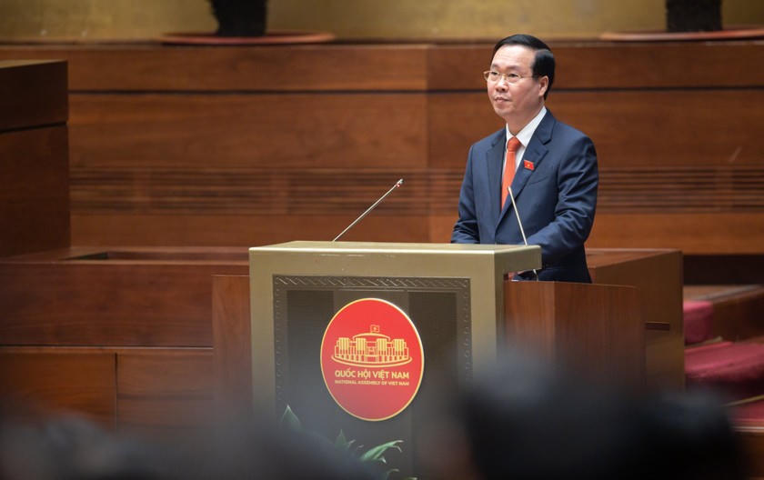 Thực hiện nghi lễ tuyên thệ nhậm chức, Chủ tịch nước Cộng hòa Xã hội chủ nghĩa Việt Nam Võ Văn Thưởng khẳng định: “Dưới cờ đỏ sao vàng thiêng liêng của Tổ quốc, trước Quốc hội và đồng bào cử tri cả nước, Tôi - Chủ tịch nước Cộng hòa xã hội chủ nghĩa Việt Nam xin tuyên thệ: Tuyệt đối trung thành với Tổ quốc, với Nhân dân, với Hiến pháp nước Cộng hòa xã hội chủ nghĩa Việt Nam; nỗ lực phấn đấu, hoàn thành tốt nhiệm vụ được Đảng, Nhà nước và Nhân dân giao phó”.