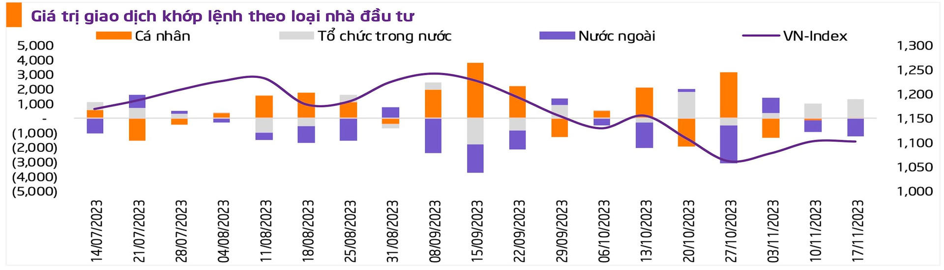VN-Index cũng không phải ngoại lệ khi chứng kiến mức tăng 14,8 điểm ngay từ lúc mở cửa và kết phiên đạt mức tăng 1,2% với khối lượng giao dịch hơn 16.000 tỷ đồng. Thị trường giao dịch thận trọng hơn trong phiên ngày 16/11 với tin tức đáo hạn hợp đồng tương lai VN30F2311 cùng với việc khả năng chưa thông qua dự thảo Luật Đất đai tại Kỳ họp Quốc hội lần này.