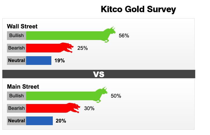 Tuần này, trong 16 nhà phân tích Phố Wall tham gia cuộc khảo sát, có 9 người (tương đương 56%) dự đoán giá vàng tăng trong tuần tới; 4 nhà phân tích khác (25%) dự đoán giá vàng giảm. 3 người còn lại (tương đương 19%) đưa ra ý kiến trung lập với vàng.