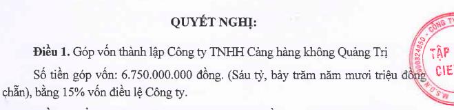 Song song với đó, Hội đồng quản trị C4G ủy quyền cho Tổng Giám đốc là người đại diện theo pháp luật ký các hồ sơ, tài liệu liên quan đến việc thành lập Công ty TNHH Cảng hàng không Quảng Trị.
