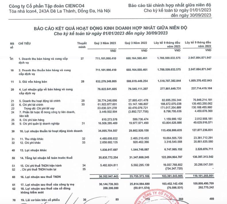 Nhờ ghi nhận lãi từ công ty liên kết và tiết giảm chi phí quản lý, Cienco4 lãi ròng 30,3 tỷ đồng, tăng 17,85% so với quý III/2022.