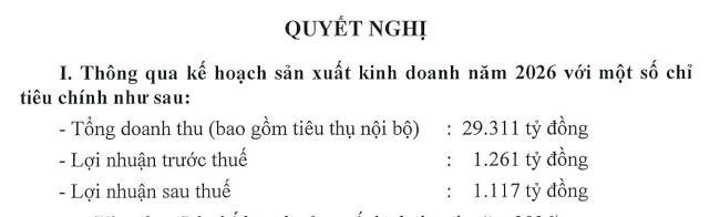 Cũng theo quyết nghị mới công bố, doanh nghiệp cũng thông qua việc vay vốn tại các ngân hàng, tổ chức tín dụng, công ty cho thuê tài chính để phục vụ sản xuất kinh doanh và đầu tư xây dựng năm 2026.