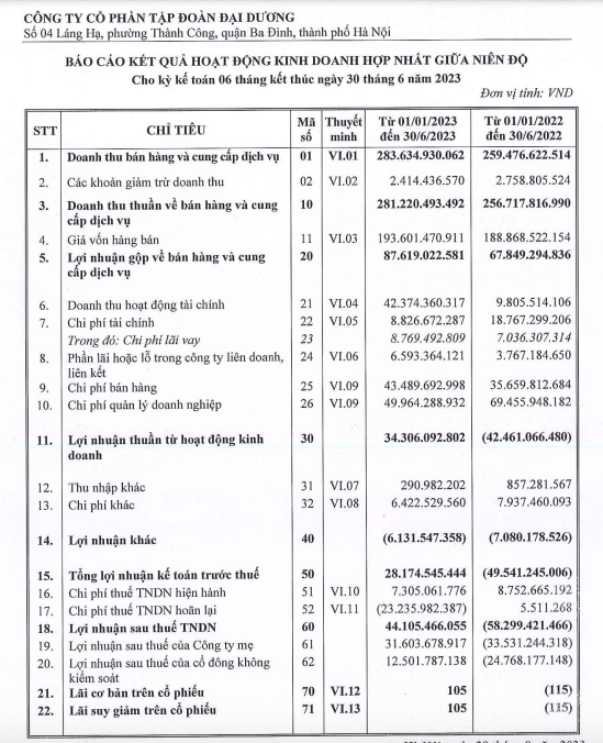 Theo báo cáo tài chính soát xét nửa đầu năm 2023 của OGC, lợi nhuận sau thuế doanh nghiệp tăng 26 tỷ đồng so với báo cáo tự lập, từ 18 tỷ đồng vọt lên 44,1 tỷ đồng.