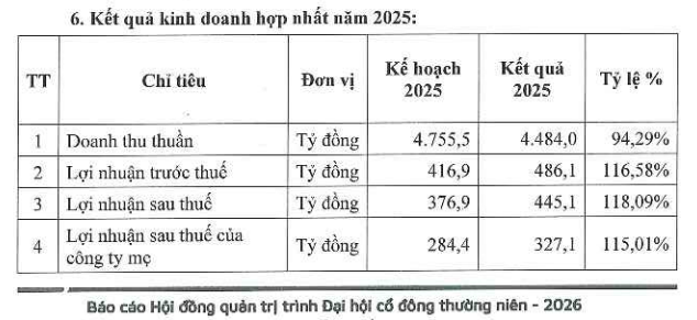 Khép lại năm 2025, tập đoàn ghi nhận doanh thu thuần hợp nhất đạt 4.755,5 tỷ đồng và lãi sau thuế 445 tỷ đồng, lần lượt hoàn thành tương ứng 94% và 118% kế hoạch đề ra.