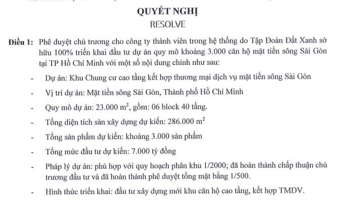 CTCP Tập đoàn Đất Xanh (mã ck: DXG) vừa công bố nghị quyết HĐQT về việc phê duyệt chủ trương cho công ty thành viên trong hệ thống do Tập Đoàn Đất Xanh sở hữu 100% triển khai đầu tư dự án.