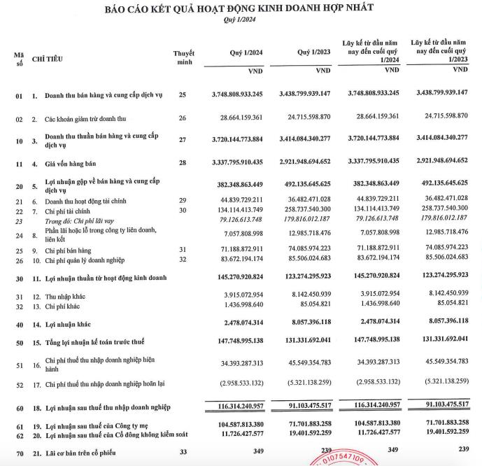 Công ty cổ phần Tập đoàn Gelex (mã ck: GEX) vừa công bố báo cáo tài chính quý I/2024 với kết quả có nhiều chuyển biến tích cực.