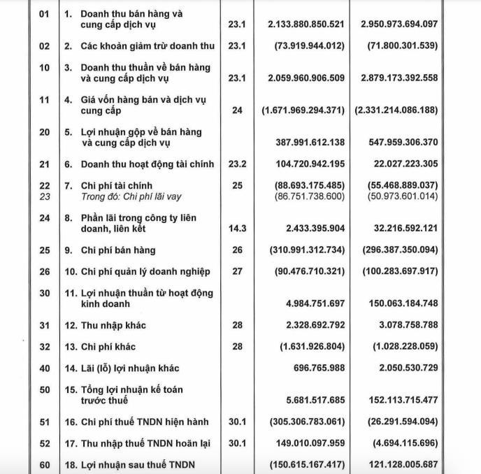 Trong kỳ, chi phí tài chính, chi phí bán hàng đều tăng. Sau khi trừ chi phí, lợi nhuận trước thuế chỉ đạt 5,82 tỷ đồng, giảm mạnh so với mức 152 tỷ đồng cùng kỳ năm ngoái.