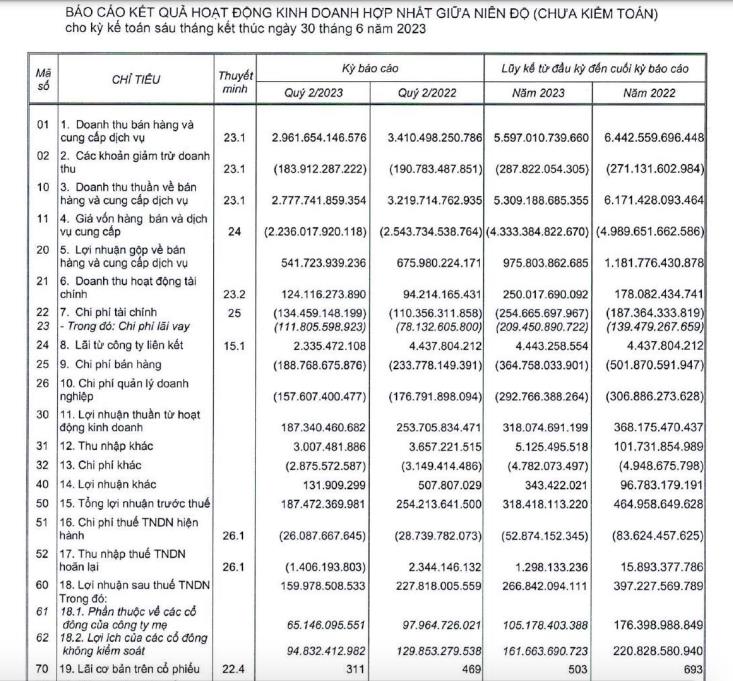 Công ty cổ phần Tập đoàn PAN (mã ck: PAN) vừa công bố báo cáo tài chính hợp nhất quý II/2023 và lũy kế 6 tháng đầu năm.