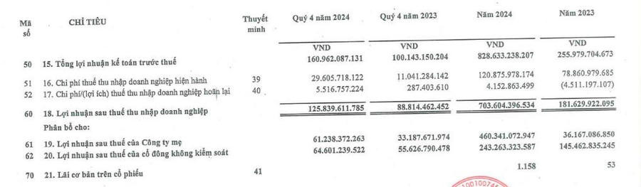 Lãi sau thuế năm 2024 gấp 3,8 lần năm ngoái