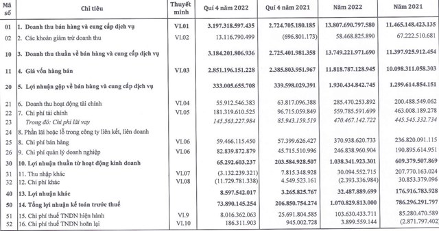 Kết quả, lợi nhuận sau thuế của công ty đạt 963,3 tỷ đồng tăng gần 37% so với năm 2021 trong đó lợi nhuận sau thuế công ty mẹ là 631 tỷ đồng.