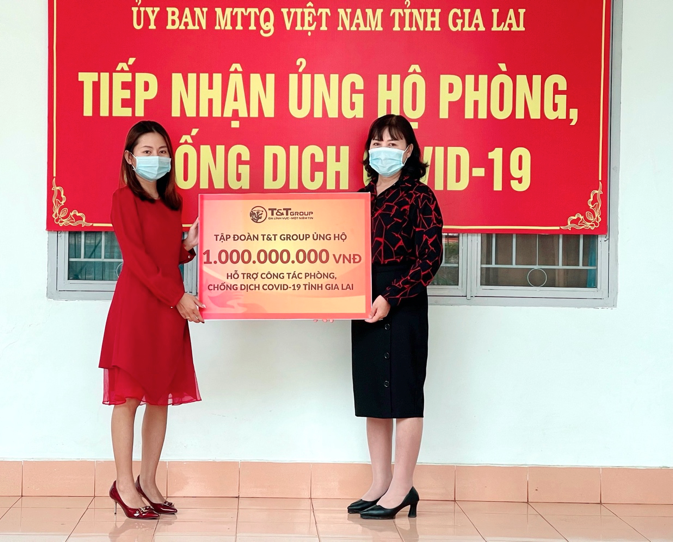 Ngày 02/06/2021, đại diện Tập đoàn T&T Group đã trao khoản hỗ trợ trên cho đại diện Uỷ ban MTTQ Việt Nam tỉnh Gia Lai và huyện Kông Chro. Là doanh nghiệp có dự án tại địa phương, T&T Group mong muốn thể hiện trách nhiệm của mình, góp phần cùng chính quyền và người dân kiểm soát tốt dịch bệnh, đảm bảo an ninh - chính trị - xã hội để doanh nghiệp an tâm phát triển kinh tế.