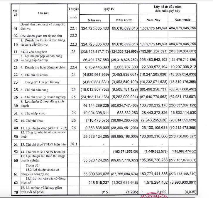 Năm 2022, Công ty lãi sau thuế 185,3 tỷ đồng, cải thiện so với mức lỗ 277 tỷ trong năm 2021.