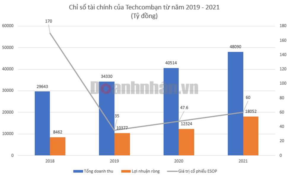 Trong kỳ họp ĐHĐCĐ vừa qua, ban lãnh đạo Techcombank tiếp tục trình phương án phát hành cổ phiếu ESOP với khối lượng 6,3 triệu cổ phiếu, mệnh giá 10.000 đồng/cp cho nhân viên của ngân hàng. Trong các năm từ 2018 – 2021, Techcombank cũng liên tục phát hành cổ phiếu ESOP với khối lượng lần lượt là 17 triệu, 3,5 triệu, 4,76 triệu và 6 triệu cổ phiếu cho nhân viên.