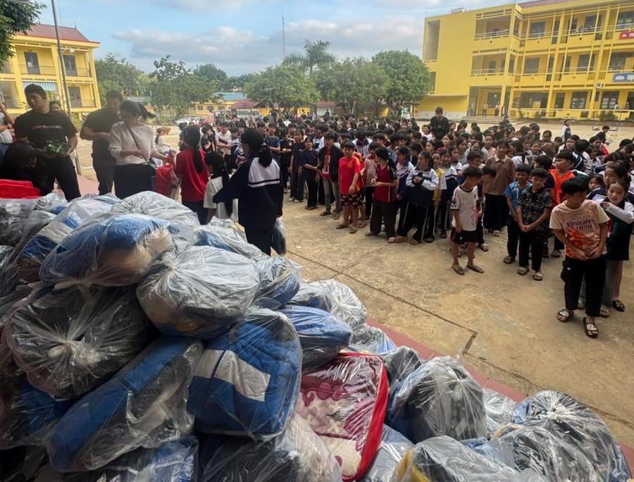 Hành trình bắt đầu tại Trường Tiểu học & THCS Ngọc Động (Cao Bằng) - nơi có 327 học sinh đang theo học trong điều kiện thiếu thốn. Từng phần quà gồm áo phao, chăn ấm, dép, vở viết, bánh kẹo và tiền mặt được trao tận tay thầy cô và học trò. Trong tiết trời lạnh đầu đông, tiếng cười trẻ thơ vang lên giữa sân trường vùng cao khiến chuyến đi thêm ấm áp, ý nghĩa.