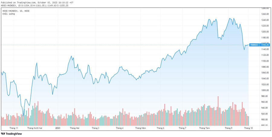 Dù trong ngắn hạn còn nhiều yếu tố bất định, song vẫn có những yếu tố được kỳ vọng sẽ có tác động tích cực đến thanh khoản thị trường trong trung hạn. Theo đó, định giá thị trường đã trở về mức cân bằng sau nhịp giảm sâu. Định giá P/E của VN-Index đã giảm từ mức 14,1 lần vào giữa tháng 9 xuống còn xấp xỉ 12,8 lần - thấp hơn mức trung bình 5 năm. Với kỳ vọng tăng trưởng lợi nhuận Q3/2023 sẽ cải thiện, P/E thị trường có thể tiếp tục giảm đi đáng kể.