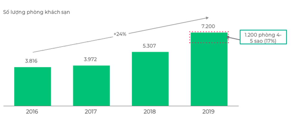 Bên cạnh đó, những số liệu về cơ sở hạ tầng lưu trú, phòng khách sạn cũng cho thấy Quy Nhơn đang sở hữu nhiều dư địa để phát triển hạ tầng lưu trú cao cấp. Theo Sở Du lịch Bình Định, tính đến hết tháng 8/2020, toàn tỉnh có 323 cơ sở với tổng số 7.940 phòng, bao gồm: một khách sạn 5 sao, 7 khách sạn 4 sao, 8 khách sạn ba sao, 40 khách sạn hai sao, 45 khách sạn một sao, 222 cơ sở lưu trú đạt chuẩn du lịch.