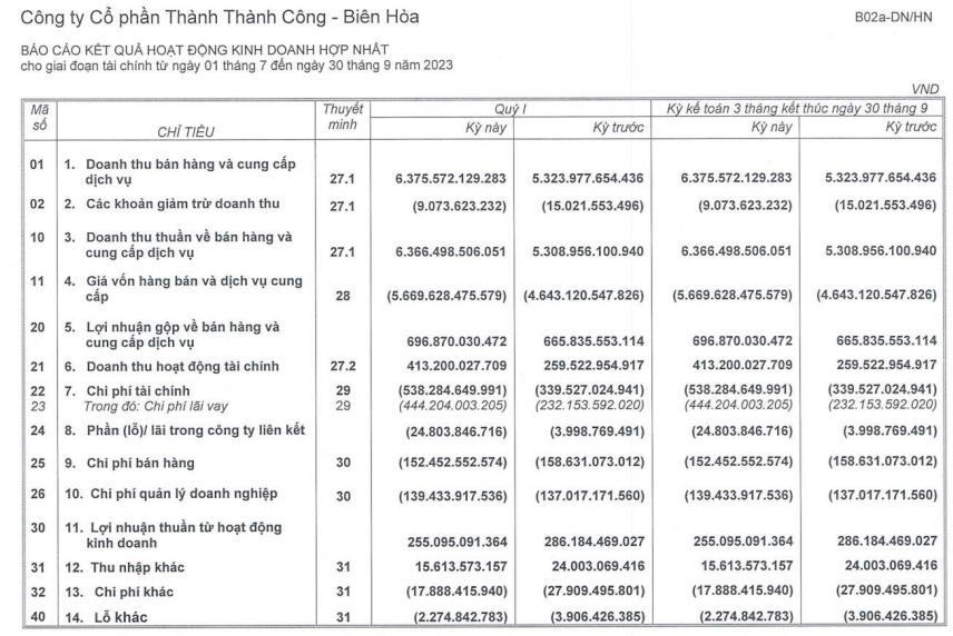 Tại thời điểm ngày 30/9/2023, tổng tài sản của Thành Thành Công - Biên Hòa đang dừng ở mức 30.763 tỷ đồng, tăng 829 tỷ đồng so với thời điểm ngày 30/6/2023.
