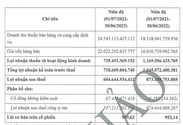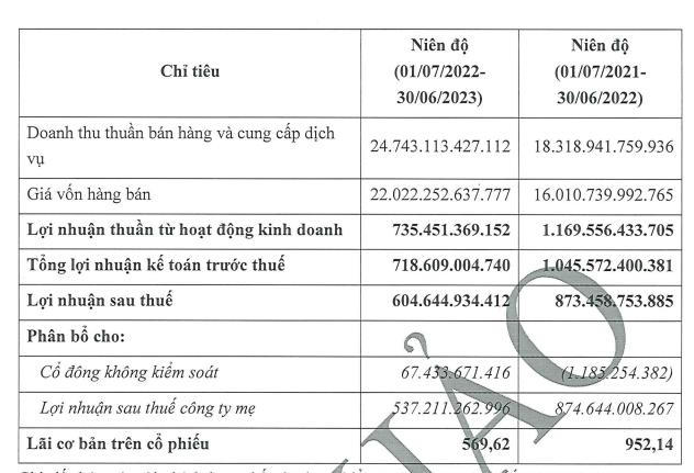 Lãi trước thuế lại giảm 31% xuống còn 718,6 tỷ đồng, chỉ đạt hơn 83% kế hoạch lợi nhuận cả niên độ (850 tỷ đồng). Lãi ròng giảm tới 39% về mức 537,2 tỷ đồng, chủ yếu do ảnh hưởng từ mặt bằng lãi suất thị trường cũng như chi phí lãi vay tăng mạnh.