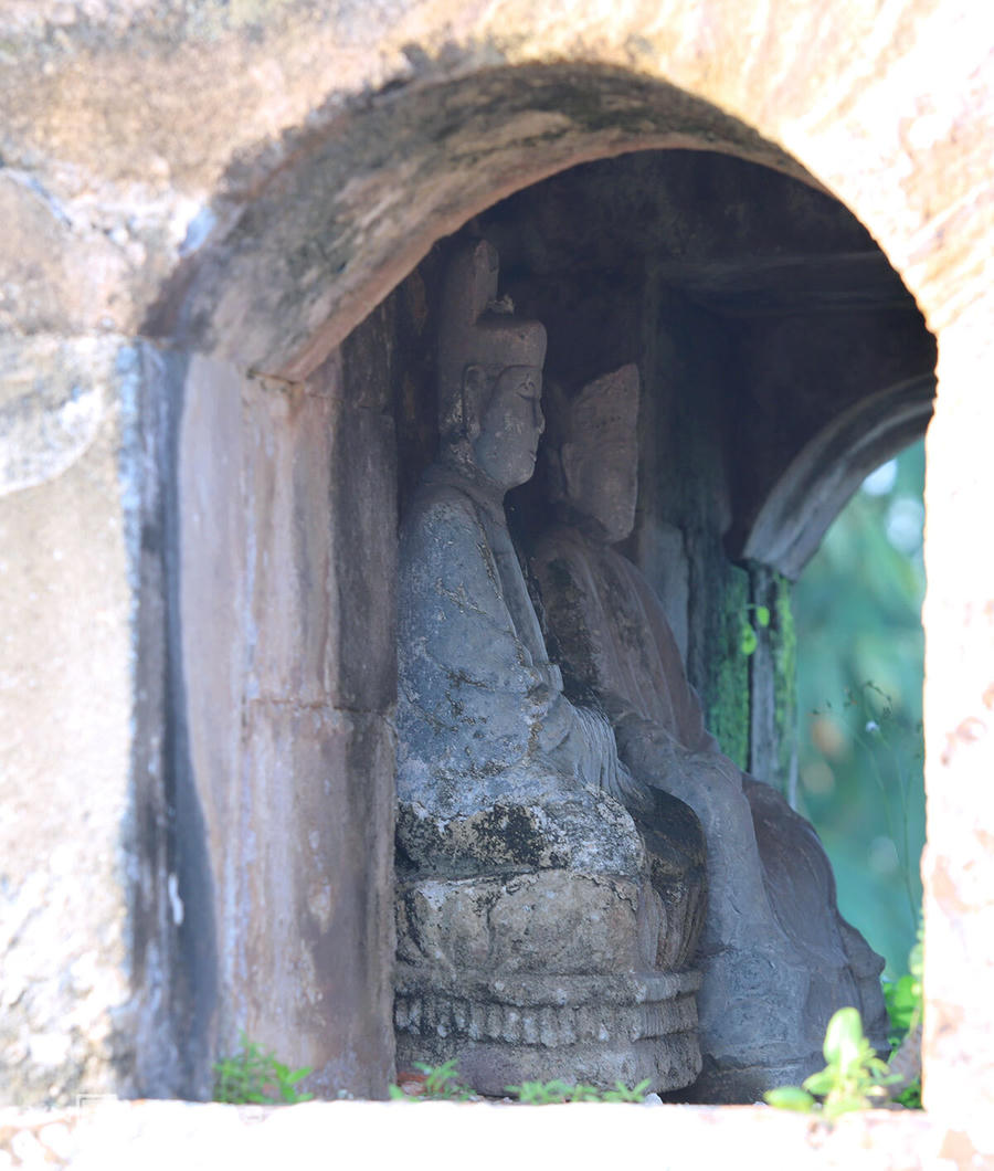 Tại tầng thứ hai của tháp còn đặt 2 pho tượng đá.