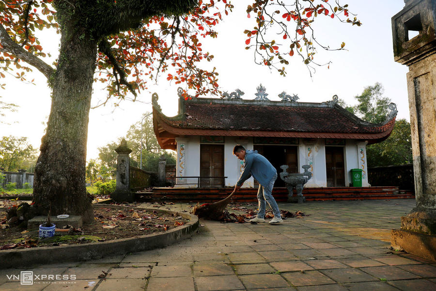Hiện, gia đình anh Dương Văn Long, 32 tuổi, trú xã Cẩm Duệ được chính quyền cử trông coi tháp. Cứ vài ngày, anh Long cùng người thân lên quét dọn xung quanh khuôn viên, hoặc khi có du khách viếng thăm thì hướng dẫn họ thắp hương và giới thiệu về lịch sử ngôi tháp.