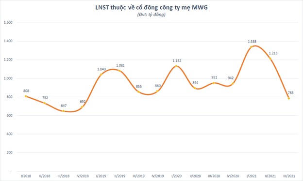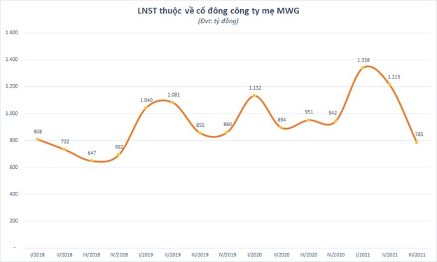 Trước đó, doanh thu thuần quý III của MWG giảm 5,4% xuống 24.333 tỷ đồng, lợi nhuận sau thuế thuộc về cổ đông công ty mẹ cũng giảm 17% xuống 785 tỷ đồng, thấp nhất từ quý I/2019.