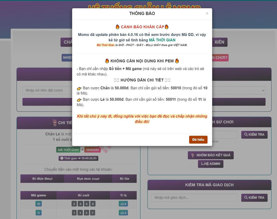 Thực tế cho thấy, sau khi MoMo nâng cấp hệ thống và hiển thị trước mã giao dịch trên ứng dụng, một số nhà cái cũng nhanh chóng “nâng cấp” cách thức cá cược, sử dụng mã thời gian giao dịch để làm căn cứ xác định thắng thua.