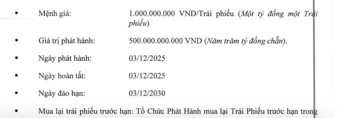 Trái phiếu có kỳ hạn 5 năm, lãi suất 6,4%/năm, dự kiến đáo hạn ngày 3/12/2030.