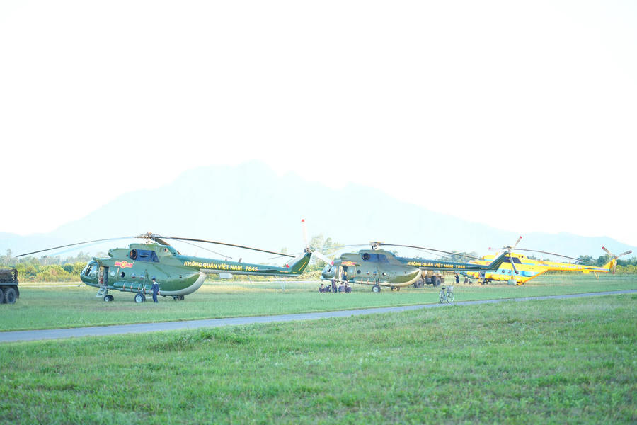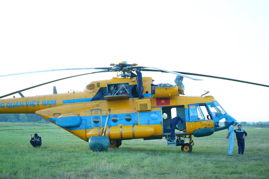 Chúng tôi có mặt tại sân bay Hòa Lạc lúc 4h sáng của một ngày cuối tuần. Không khí rộn ràng, khẩn trương từ Đài Chỉ huy trên cao đến mặt đường băng vẫn còn lớp lớp sương mù lúc rạng sáng. Những chiếc trực thăng Mi 8, Mi 171, Mi 17 được kéo ra, xếp hàng thẳng tắp chuẩn bị cho một ngày huấn luyện mới. Những bóng áo màu xanh chàm, màu xanh da trời biểu tượng cho lực lượng Không quân Nhân dân Việt Nam anh hùng đang tất bật chuẩn bị cho ban bay làm rộn ràng, náo nức cả không gian mênh mông dưới chân núi Ba Vì.