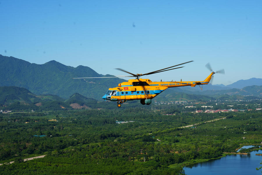 Theo cánh trực thăng bay huấn luyện kéo Cờ Tổ quốc hướng về Ngày hội non sông
