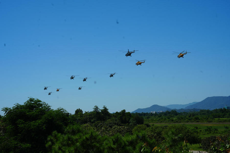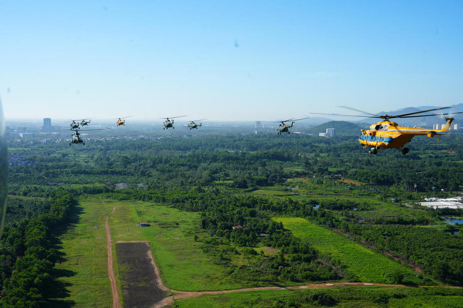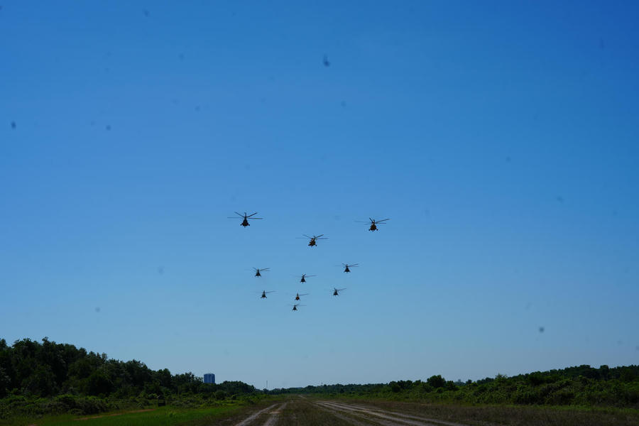 Hối hả cho công việc của một ngày mới, Thượng tá Trần Minh Phú, Phó Trung đoàn trưởng Trung đoàn Không quân 916, Sư đoàn 371 cho biết, nhiệm vụ của Trung đoàn 916 và hai trung đoàn 917, 930 đã tập trung lực lượng không quân trực thăng từ đầu tháng 7. Đến nay đã huấn luyện được 18 ban và phối hợp khá nhuần nhuyễn trong quá trình bay hợp luyện đội hình 10 chiếc theo phương án đã xác định. Cơ bản đội hình bay10 chiếc đến nay phối hợp nhịp nhàng, giữ đúng cự ly giãn cách và độ cao ổn định.