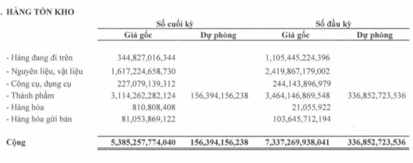 Tại thời điểm cuối tháng 6/2023, hàng tồn kho đã giảm gần 2.000 tỷ đồng, về mức 5.385 tỷ đồng. Trong đó, NKG đã trích lập 156,4 tỷ đồng dự phòng giảm giá hàng tồn kho.