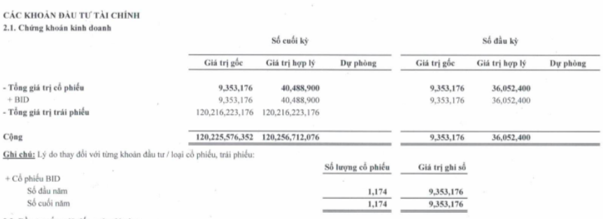 Mức tiền đầu tư tài chính ngắn hạn là 396 tỷ đồng, cao hơn thời điểm đầu năm khoảng 145 tỷ đồng. Trong đó, riêng đầu tư chứng khoán kinh doanh là 120 tỷ đồng, gần như toàn bộ là đầu tư trái phiếu và hơn 9 tỷ đồng mua 1.174 cổ phiếu BID.