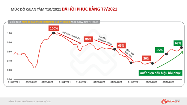 Báo cáo mới đây của Batdongsan.com.vn cho thấy thị trường bất động sản đang chứng kiến sự hồi phục ngoạn mục tới hơn 100% khi dịch Covid-19...