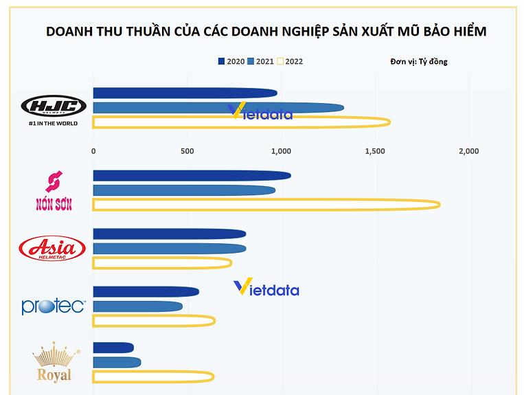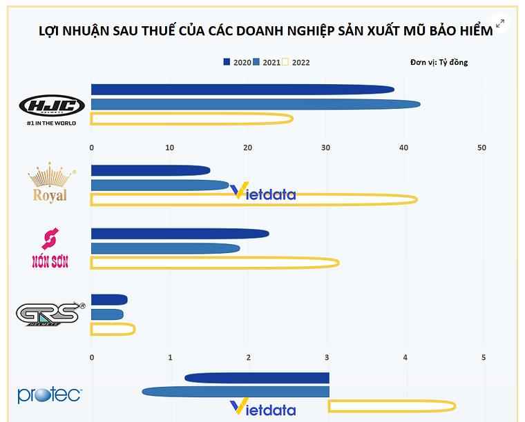 Theo số liệu thống kê của Vietdata, doanh nghiệp mũ bảo hiểm đang dẫn đầu về doanh thu và lợi nhuận là HJC.