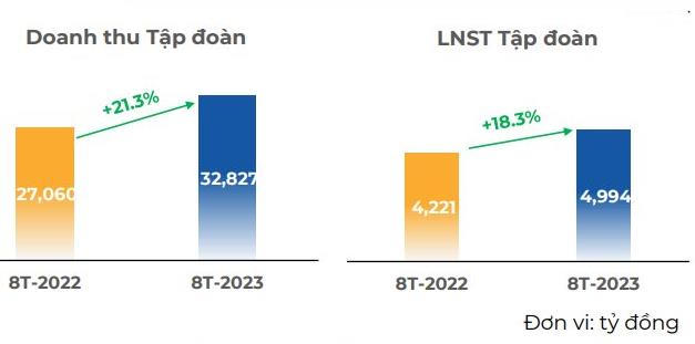 Sau 8 tháng, tập đoàn đã thực hiện được 63% chỉ tiêu doanh thu và 65% mục tiêu lợi nhuận năm.