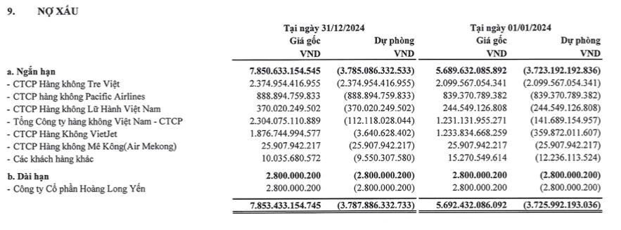 Một điểm đáng lưu ý trong báo cáo tài chính là khoản phải thu ngắn hạn từ khách hàng lên tới 10.444 tỷ đồng, buộc ACV phải trích lập dự phòng nợ xấu tới 3.788 tỷ đồng. Trong đó, các khoản phải thu từ Bamboo Airways là 2.375 tỷ đồng, Pacific Airlines là 889 tỷ đồng và Vietravel Airlines là 370 tỷ đồng. Các khoản phải thu này đều phải trích lập dự phòng 100%. Ngược lại, các khoản phải thu từ Vietnam Airlines và Vietjet Air có tỷ lệ trích lập dự phòng thấp hơn nhiều.