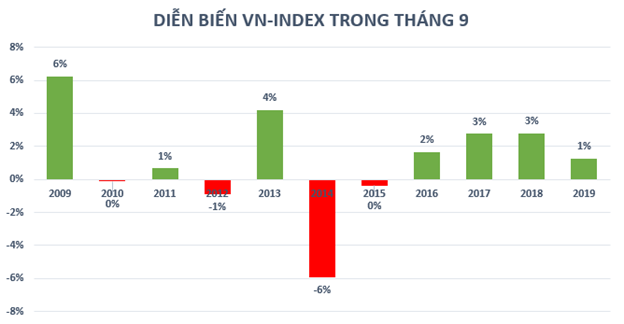 Diễn biến tích cực trong tháng 8 giúp nhà đầu tư chứng khoán bước sang tháng 9 cũng như 4 tháng cuối năm với tâm lý tương đối lạc quan. Sự lạc quan không phải không có cơ sở khi dữ liệu lịch sử cho thấy tháng 9 hàng năm thường là thời điểm tương đối thuận đối với thị trường chứng khoán Việt Nam.