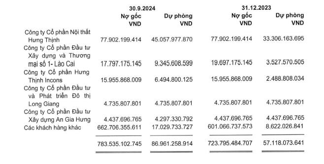 Đáng chú ý, gỗ An Cường ghi nhận khoản dự phòng nợ phải thu ngắn hạn tăng từ 57,1 tỷ đồng lên 86,9 tỷ đồng, trong đó, khoản trích lập dự phòng nợ phải thu ngắn hạn đối với Công ty cổ phần Nội thất Hưng Thịnh, tăng từ 33,3 tỷ đồng lên 45 tỷ đồng; công ty cổ phần đầu tư Xây dựng và thương mại số 1 - Lào Cai tăng từ 3,5 tỷ lên 9,3 tỷ đồng...