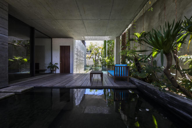 Cây, nước và ánh sáng tạo nên cảnh quan như "rừng nhiệt đới" cho ngôi nhà.