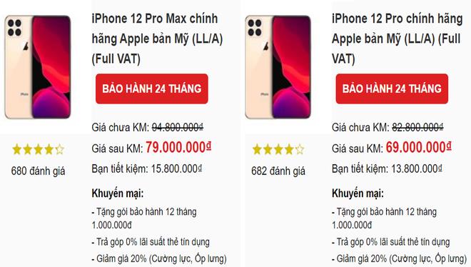 Trong khi đó, giá dự kiến cho iPhone 12 Pro Max chính hãng Apple bản Mỹ (LL/A) là 79 triệu đồng (bao gồm VAT), iPhone 12 là 69 triệu đồng.